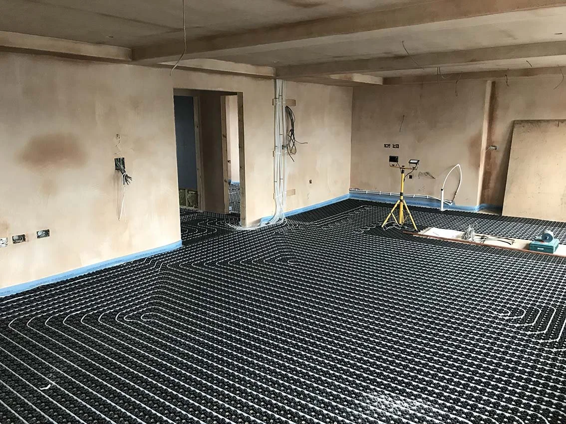 We completed the full refurbishment of this two-bedroom flat in Cambridge, transforming the layout to create a light and open-plan feel. By removing two walls and reconfiguring the spaces, the kitchen and a bedroom were repositioned to maximise flow and functionality. The home features a bespoke stained oak herringbone floor throughout, while comfort is elevated with an innovative underfloor heating and cooling system that integrates seamlessly up the bathroom wall.